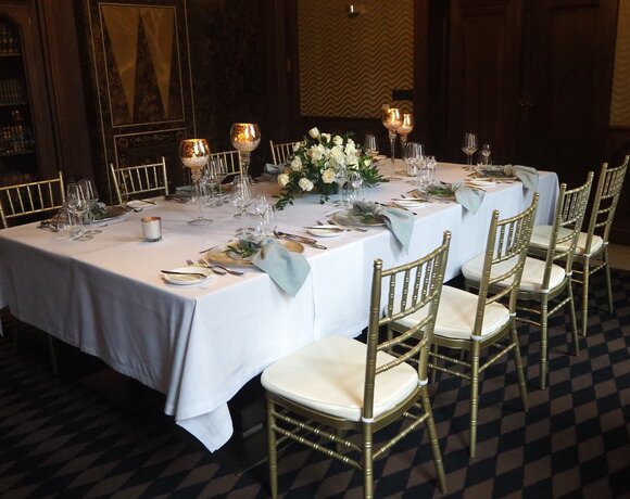 - standardowe, stylowe nakrycie stołów (białe obrusy, serwety, świeże kwiaty),